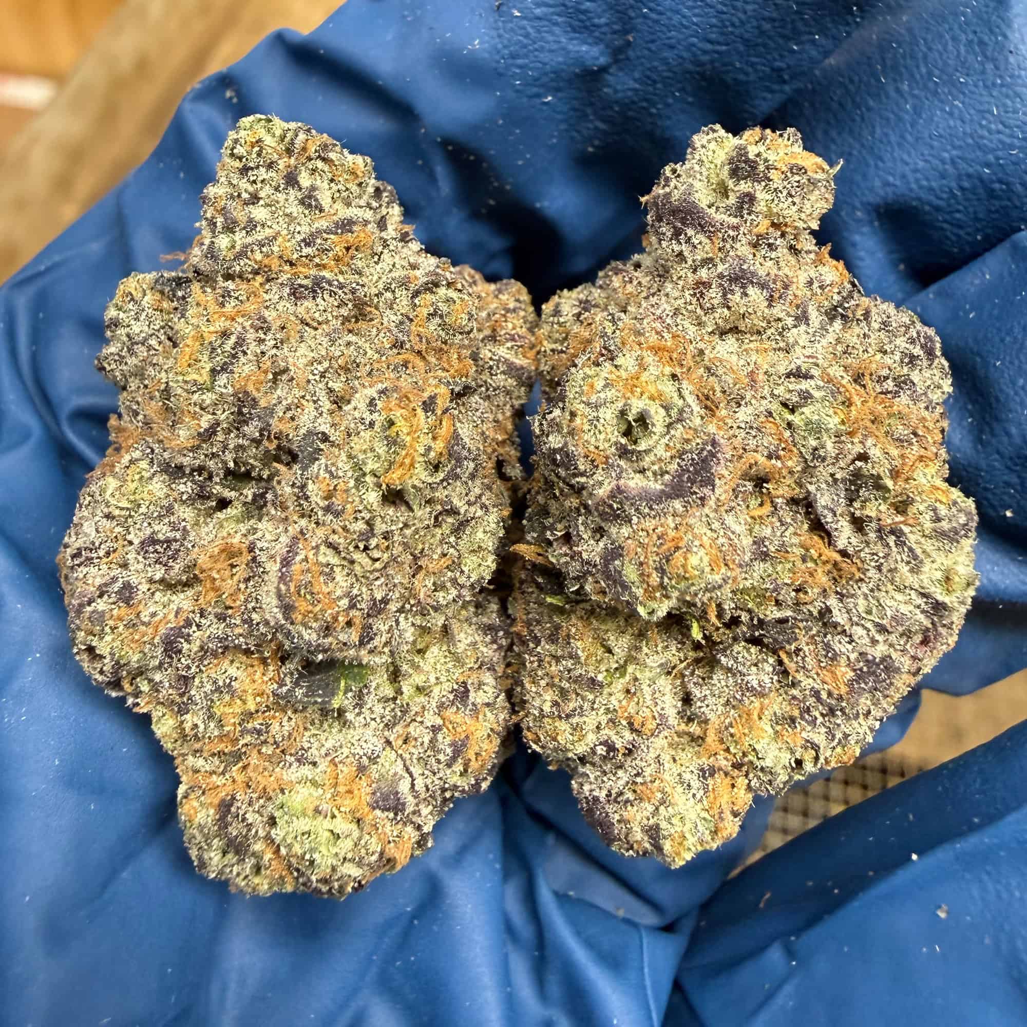 This bud is fire, it’s dark purple with long orange hairs with trichomes you can see across the room! It smells great and smokes smooth with a fantastic flavor. The buds on average are about an inch or so. This is a bud that when people see it they want it. Oh and the high is on point. A little focus with a lot of relaxation. The only problem that I have been able to find with anything from this company is that the bud could have been cured for a few more weeks but honestly for this price it’s EXQUISITE !! Thanks DP you have a new customer for life! 9.5/10