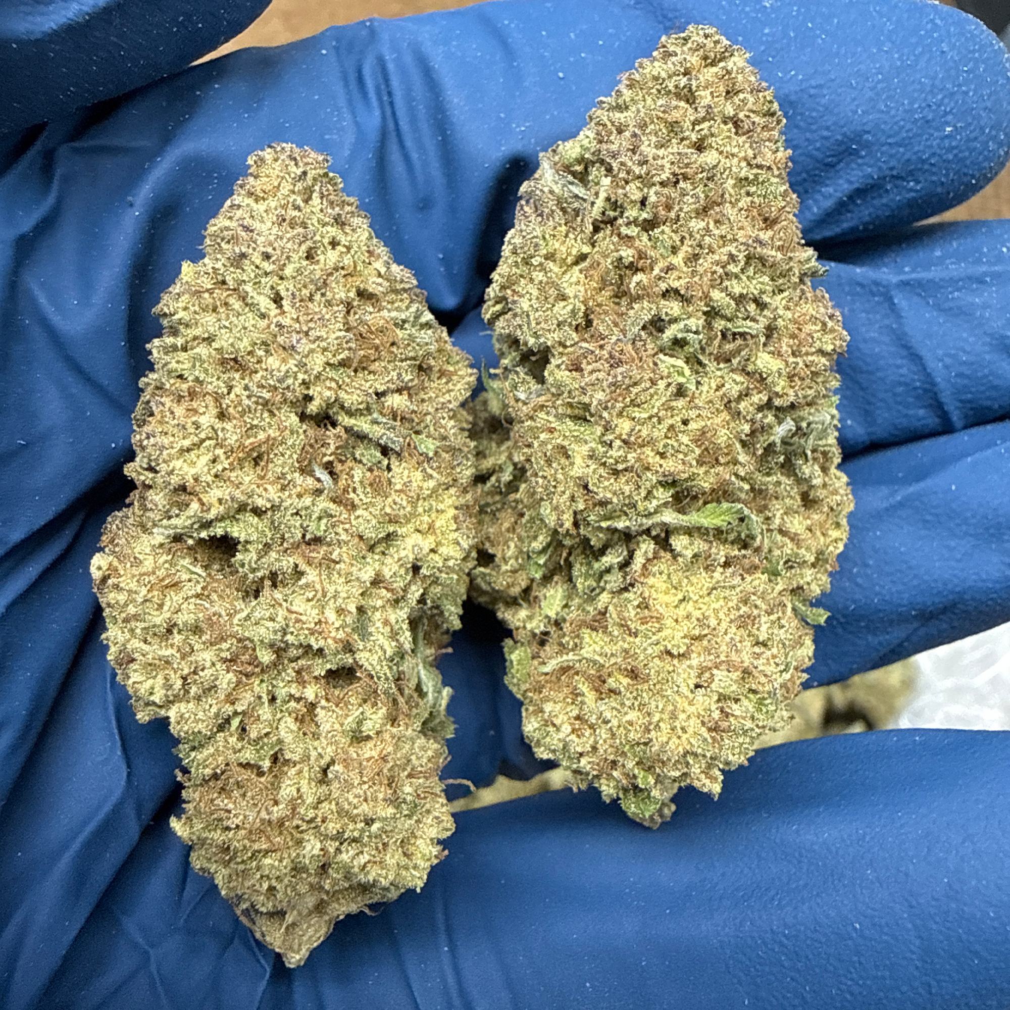 the bag was 7g short but the smell is exactly what you expect the strain to smell like the taste is surprising but good looks are fine big to medium size frosty nugs